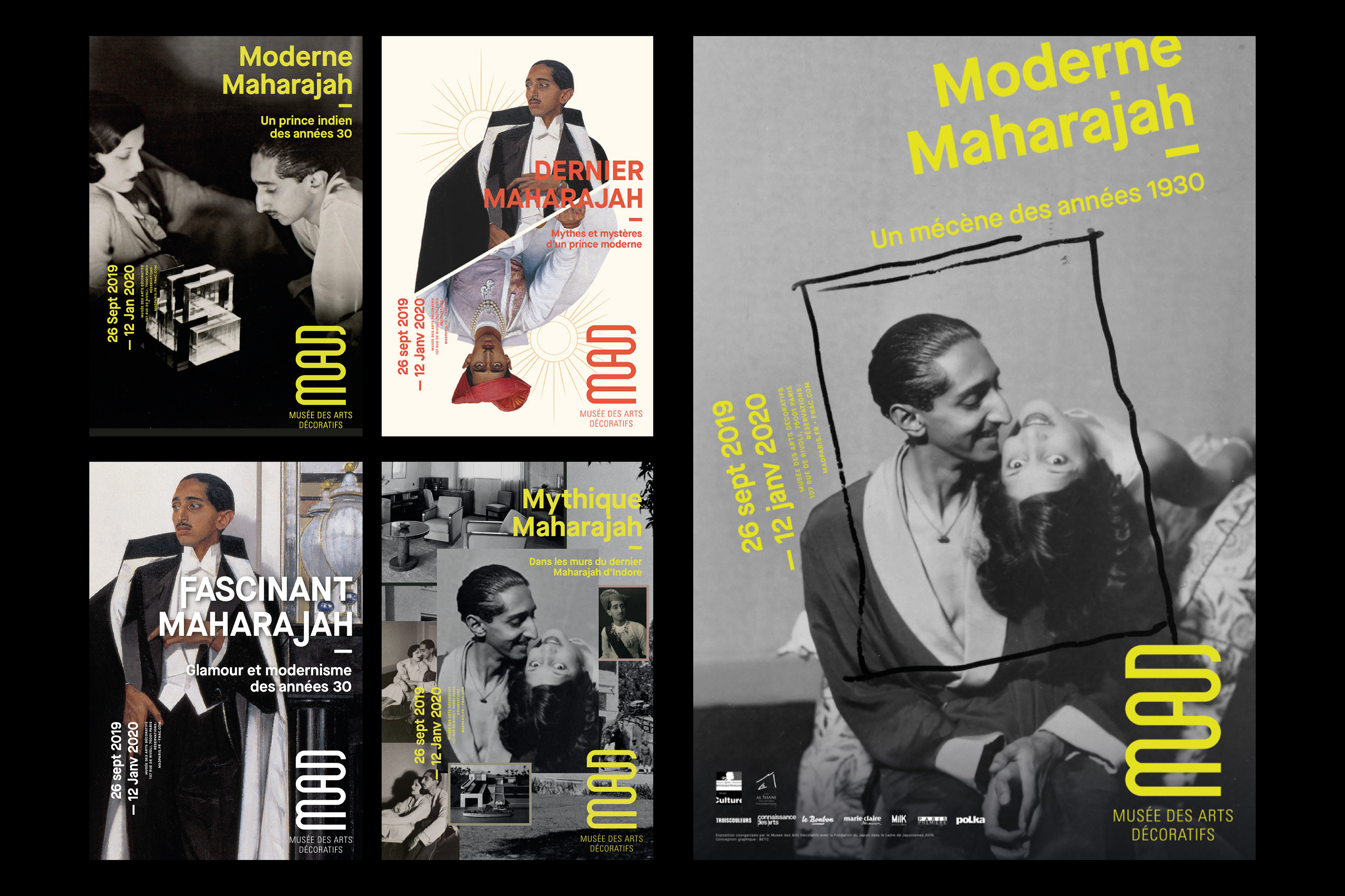 Propositions d'affiches pour l'exposition Moderne Maharajah au Musée des Arts Décoratifs de Paris.